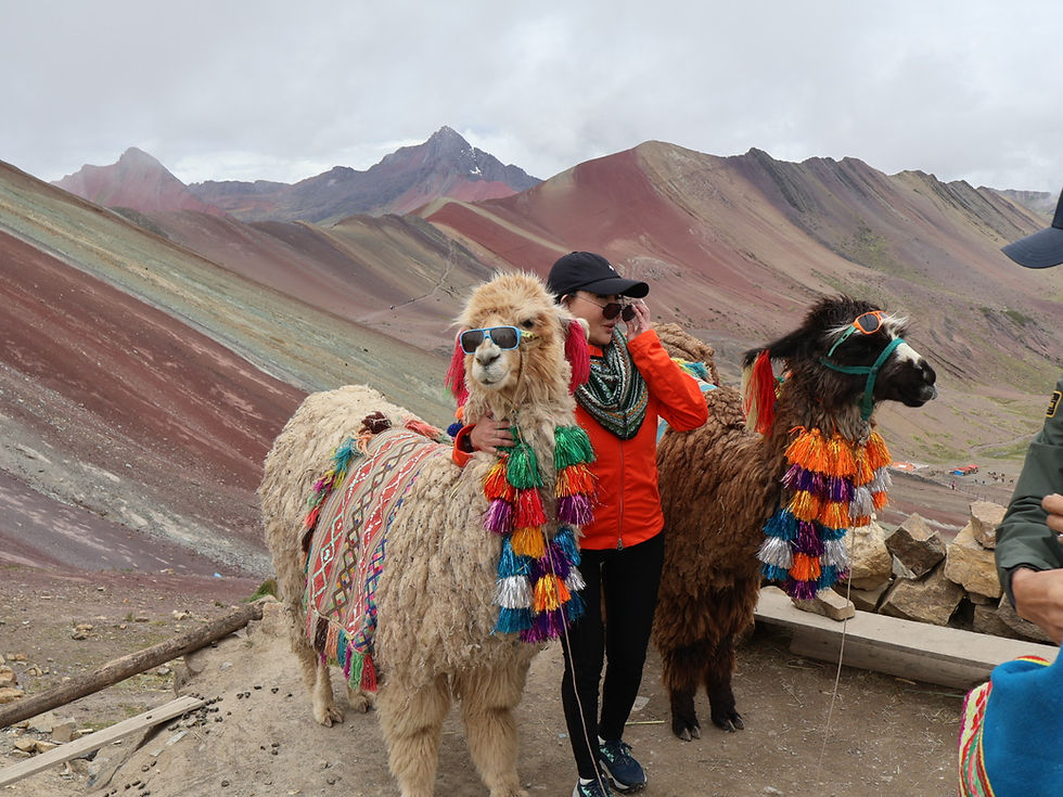 現地の人にサングラスをつけられたアルパカもいます。※写真を撮るにはチップを払う必要あり